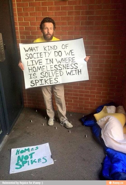 that you put into those spikes for all your different locations, you could have built inexpensive housing for some of the homeless…especially some of the homeless vets that are out there. Just like the point that instead of sending money to other countries who hate us, how about spending that money right here on people who love us!!!! What kind of sense does that make? Why do we have men and women who have served our country, went places and did things that no sane human being would EVER do on purpose, and made it back home only to be living in a cardboard box (and that’s if their lucky!)? THAT IS NOT RIGHT!