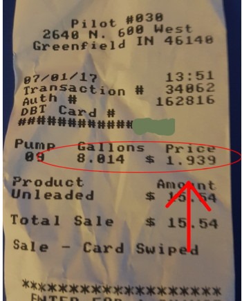down south, I started seeing signs for gas at $2.01 and $2.05, but when I saw … well, you won’t believe me unless I show it to you. I HAD to take a picture of the receipt or even I wouldn’t believe it!
