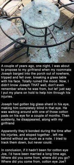 However, his face was so covered with mud that she bent over and unzipped his pants. She remarked, “Well, he’s not my husband.”