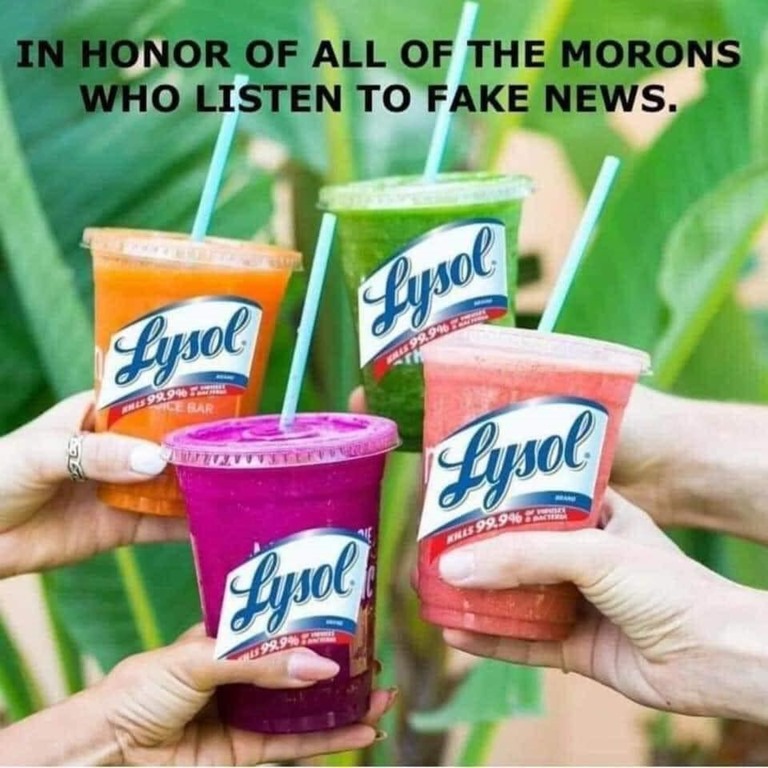 Public Service Announcement: If you or a loved one died from injecting disinfectant, call the law office of Ura, Moron, & D’Zervit.
