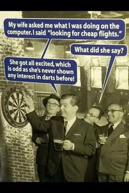 A lot of you guys, if not all of you guys, know that I play darts. I missed a HUGE tournament on Saturday due to my quarantine and to make up for that, a couple of you have been sending me some darts cartoons, memes, signs, and such. So here, in one collection, is what I’ve gotten from Aussie Pete and a couple of other of you.