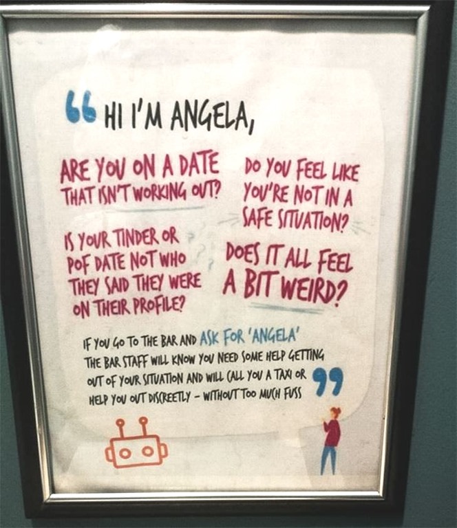 I have seen similar signs to this in many different establishments. Some ask you to order a special drink if you’re worried. I think it’s a great idea.
