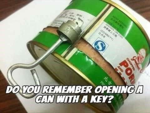 Your key to open a can brought back memories. 17 years ago, my son was in kindergarten. I always packed his lunch with whatever he wanted, within reason. One day I got a note from his teacher, saying she replaced his lunch with a slice of pizza. Her reason was , , , she didn’t have a way to open the can. She did let him eat his crackers though. I think she just didn’t want to open a can of sardines in the classroom!
