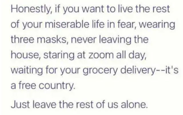 And that, dear campers, is another great way to respond when they ask you to produce your vaccine cards at restaurants … you know … for those of you who don’t want to just say, “Fuck off!”  Thanks to John S. for sharing.