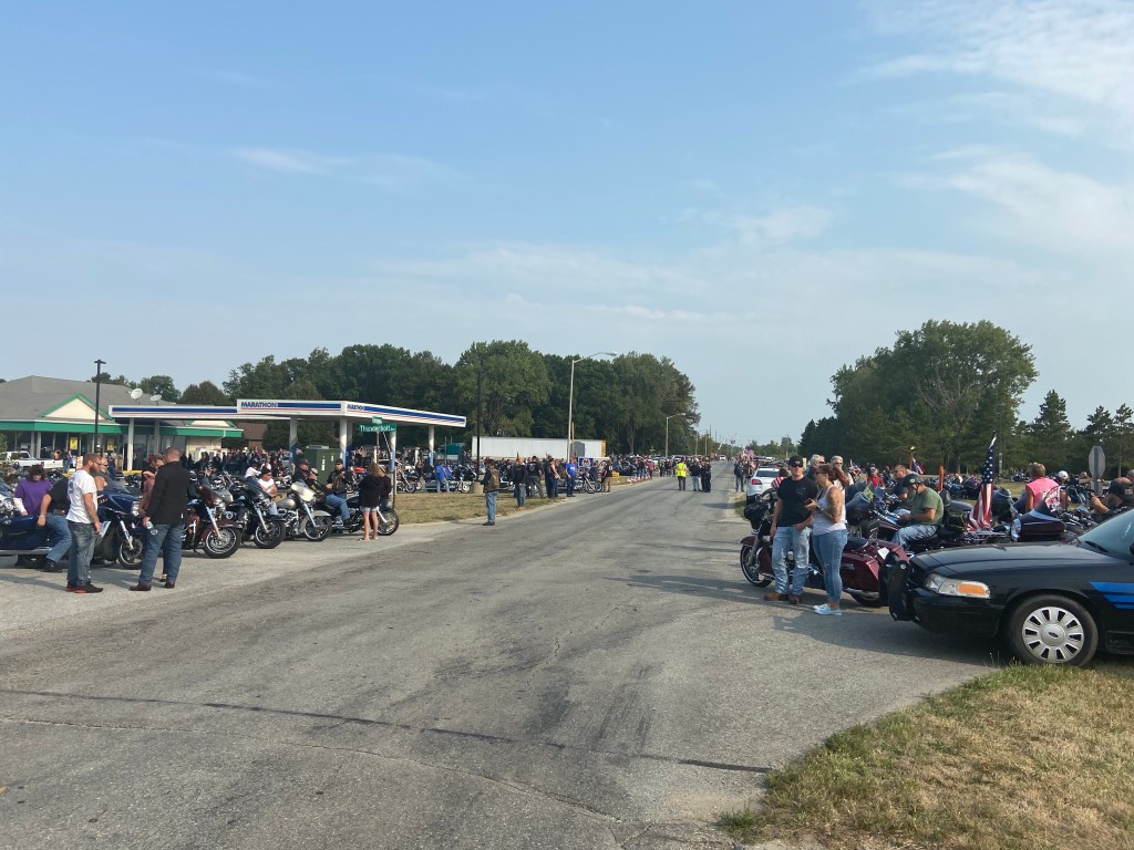 Anyway, today, Sunday I taught another class and it was also the day that Cpl Sanchez was brought home. It was amazing. There must have been 10,000 motorcycles. It took over an hour for all of them to go by.