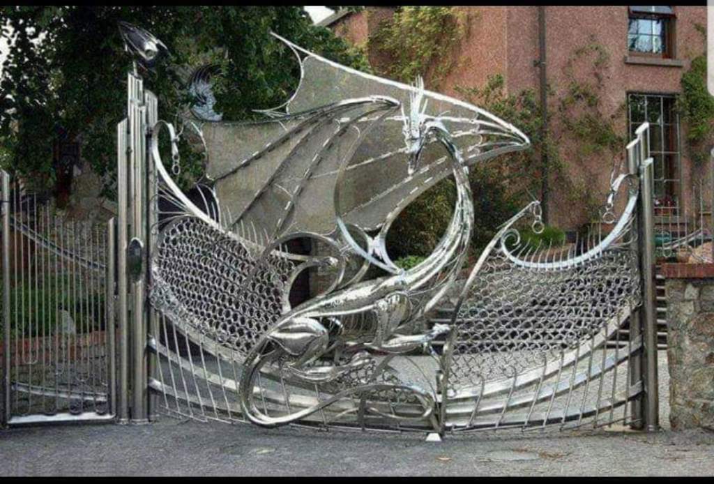 The public gate outside the headquarters of Dragon Laffs, LTD.