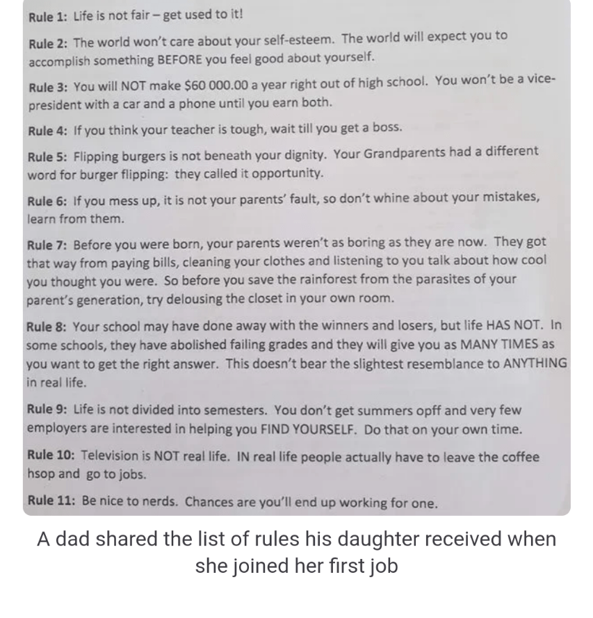 This next one is great. Thanks to Stephanie for sharing it with the rest of us. I think that every teenager should have to memorize these rules and be able to recite them to any adult that asks at any time. Except that there are a bunch of “adults” that I know that need to memorize these as well.