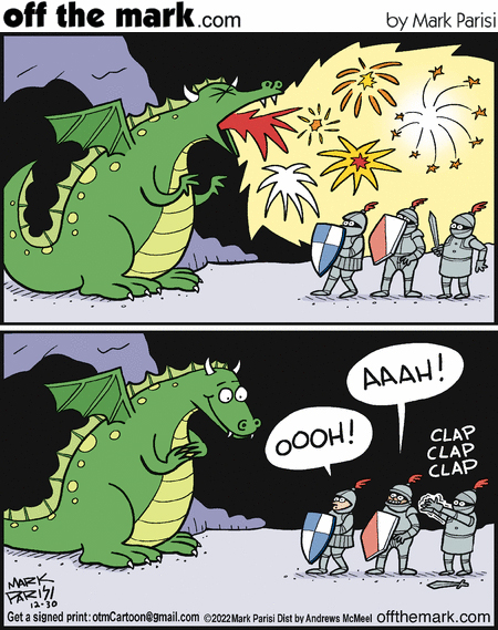 See, we’re not all bad. But, the third panel would actually show the dragon eating the knights.