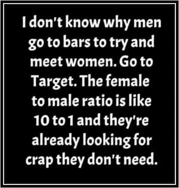 When they arrived at the 18th green, the blonde was three under, and had a very nasty 12-foot putt on an undulating green for a par. She turned to the three guys and said, “I really want to thank you all for not acting like a bunch of chauvinists and telling me what club to use or how to play a shot, but I need this putt for a 69 and I’d really like to break 70 on this course…