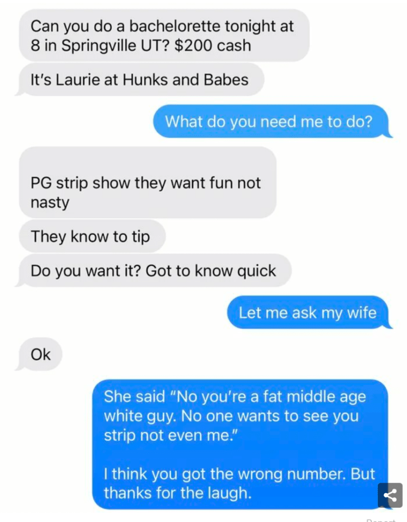 I just keep picturing me getting this text and Mary giving that exact same response and I’m laughing so hard I’m crying.  It’s perfect…just absolutely perfect!
