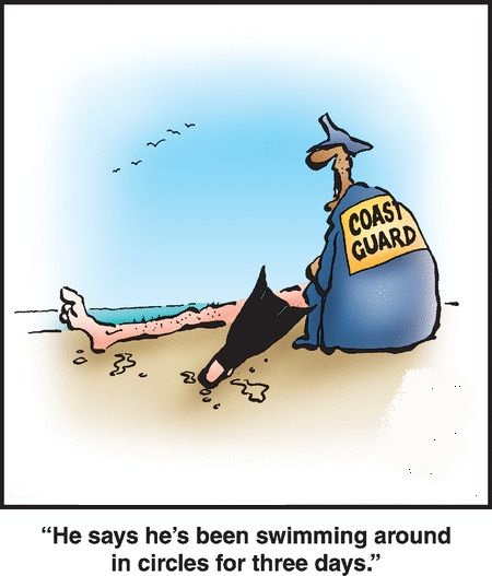 “Feeling safe, the tourist started swimming leisurely toward the shore. About halfway there he asked the guy,