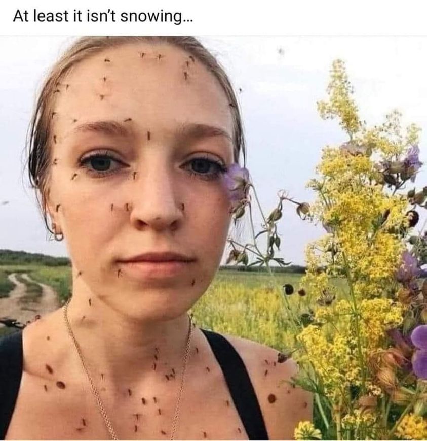 AAAAAAAAAAAAHHHHHHHHHHHHHHH!!!!!!!!!!!!!!!!!!! I’d rather it be snowing!!!, Or lightning!!! Or ANYTHING other than that. I’m SO allergic to mosquitos! I can’t see how she can just stand there and be bit while someone takes the picture! I want to scream and slap my face just thinking about it.