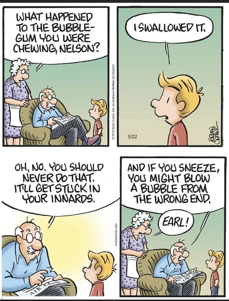Pa races to the outhouse, throws open the door and asks, “Ma, are you all right??!!” As she pulls up her pants she says, “Yeah, but I’m sure glad I didn’t fart in the kitchen.”