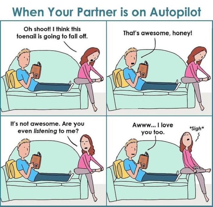 A few moments later he tried again and she answered right away. He asked her why she hadn’t answered before, and she said that the phone hadn’t rung.