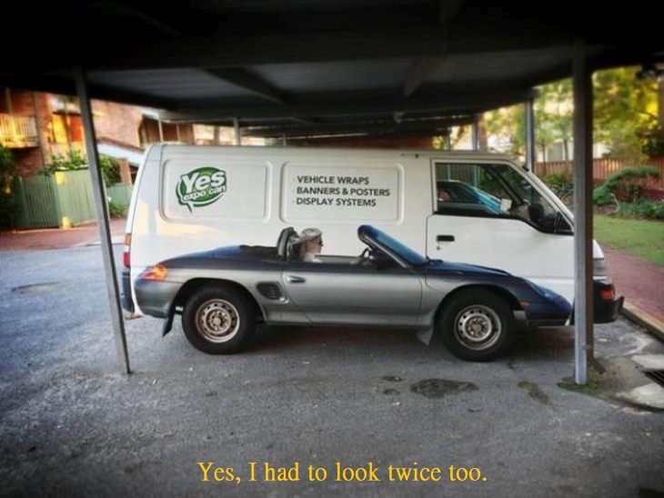 Meanwhile, his girlfriend is still sitting in the car and reading a magazine.