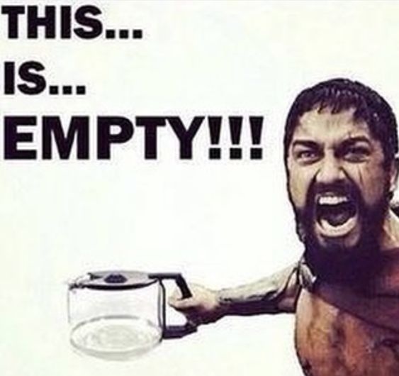 I KNOW!! I hate it when that happens! You empty it, you make a new pot!! The rule is in my office, the boss gets off at 1500 hrs. If you empty the pot before 1400 hrs., you make a new pot. If it’s the weekend and the boss is here until 1600 or even 1700, which normally happens, then up to one hour prior to his departure, there better be coffee in the coffee pot.