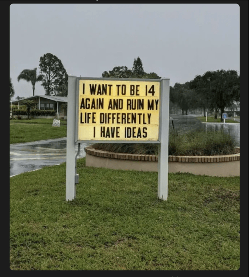 Thank you again for laughs to brighten my day. THe very lsat picture, “To Be 14 Again”, is one I firmly agree with. 😉