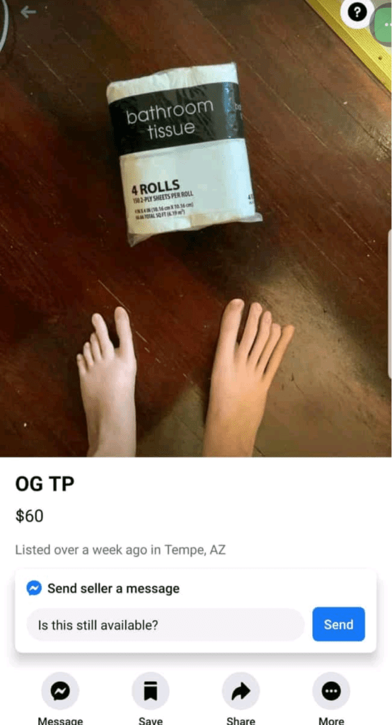 You’re going to ask about $60 toilet paper and not say a word about THOSE TOES!?!?