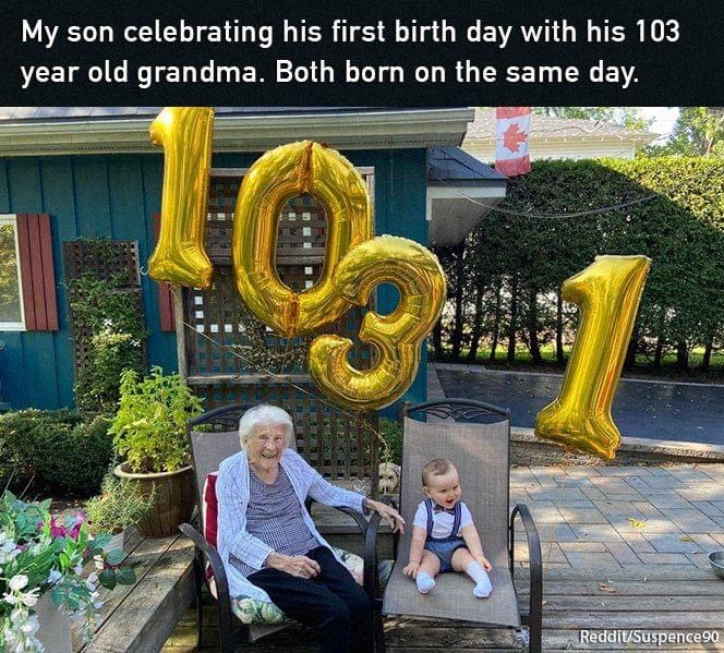 103 year old Grandma?! Not Great or even Great-Great Grandma? That would mean that both mom and Grandma were about 51 years-old when they had each other! Legitimately, it could be his great, great, great, great, grandma.
