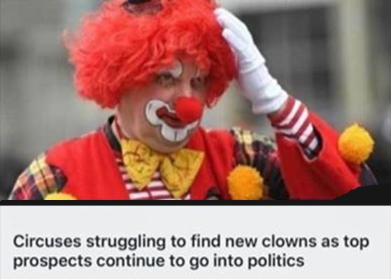 I took my 8 year old daughter to the office on “Take Your Kids to Work Day”, but when we walked in the office she started crying. As several concerned co-workers gather around, I asked her what was wrong and she said: “Daddy, where are all the clowns you said you worked with?”