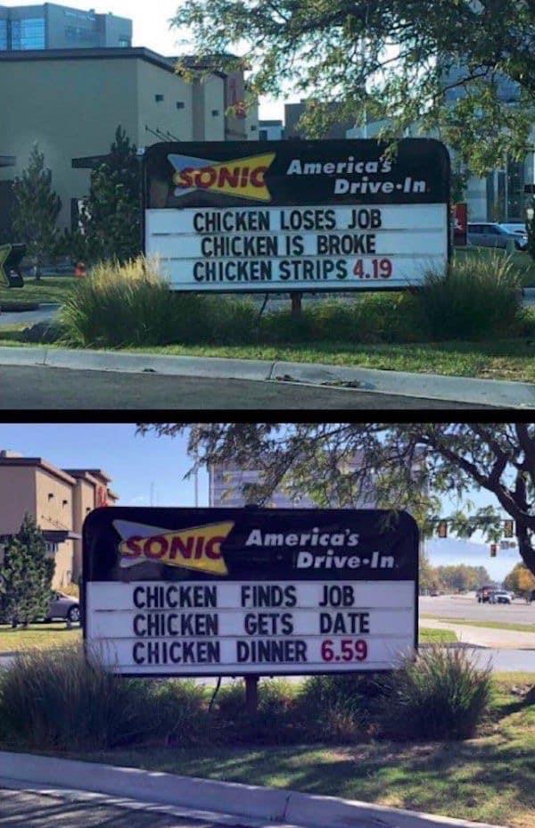 The other driver leaned out of his window. “I hate to tell you, man,” he said, “but I think it’s too late!”