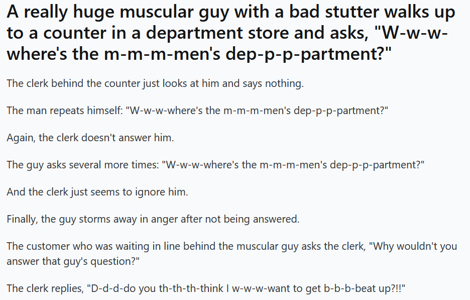 “Excuse me, sorry, oops, excuse me, pardon me, gotta hurry, oops, excuse me.”