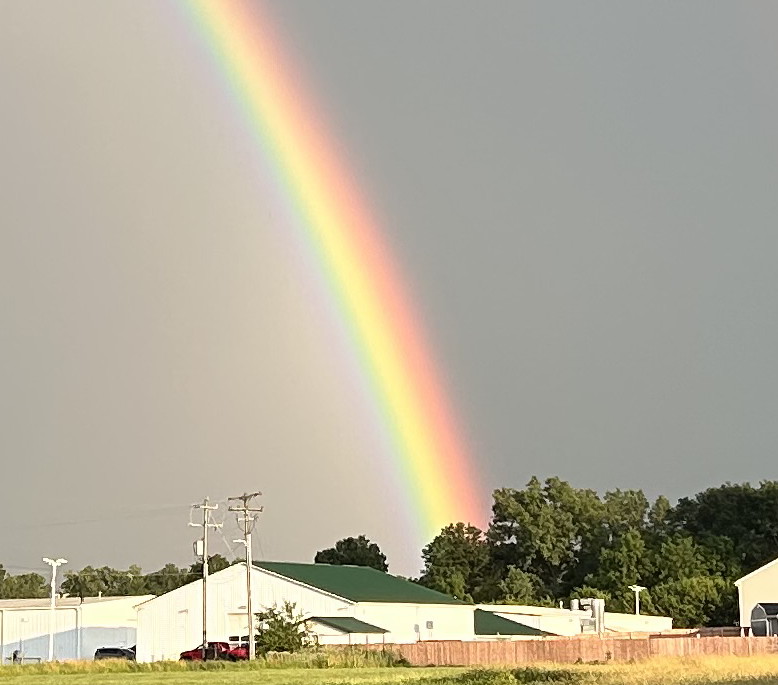 Look at that!  You can make out all seven colors.  Remember the old way of remembering the colors of a rainbow? ROY-G-BIV? Red, Orange, Yellow, Green, Blue, Indigo, Violet.  Pronounced Roy Gee Biv.  And MAN, yellow sure is bright!  God’s promise to us that He will never again destroy the earth by flood.  Next time, it will be by fire.  Says so right there in the Bible.