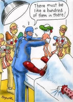 A new arrival, about to enter a hospital, saw two white coated doctors searching through the flower beds. “Excuse me,” he said, “Have you lost something?”