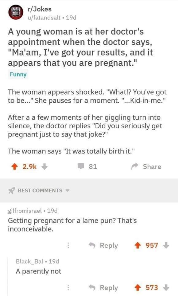 Some time later he phones the hospital and is told that he the father of twins, but the nurse cautions, “There is another on the way, so call back later.”