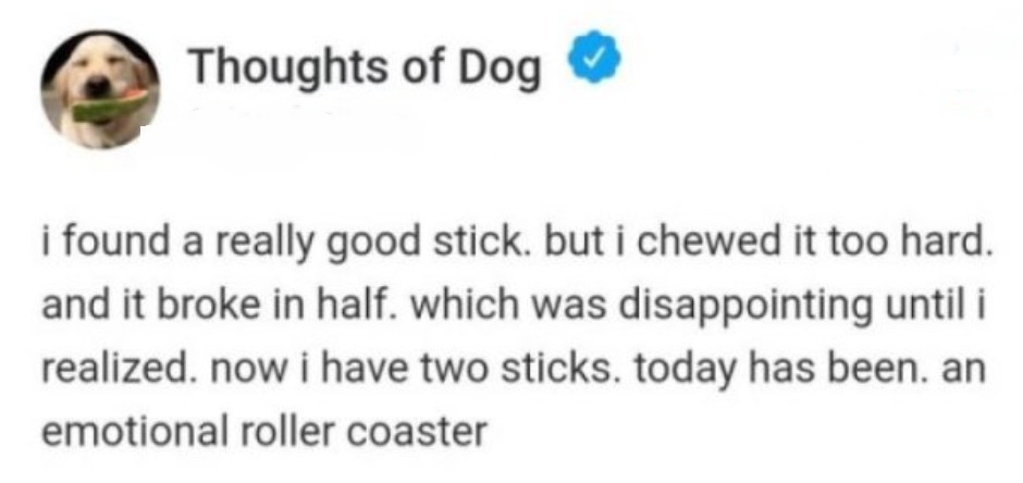 I know for a fact that’s how Willow feels…but then she runs away like a little chicken as soon as she’s approached by … ANYTHING!!! Got a great bark though.