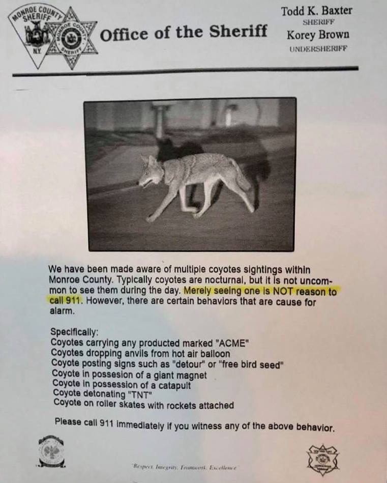 Please dial 9-1-1 if you see any coyote with a paint brush and a bucket of paint near the base of a cliff…