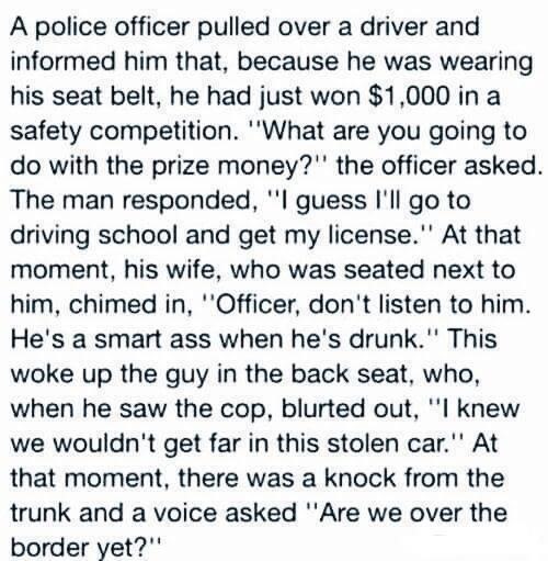 Boat Owner: “Well, there’s Clarence, my deckhand, he’s been with me for 3 years. I pay him $1,000 a week plus free room and board. Then there’s the mentally challenged guy. He works about 18 hours every day and does about 90% of the work around here. He makes about $10 per week, pays his own room and board, and I buy him a bottle of Bacardi rum and a dozen Budweiser’s every Saturday night so he can cope with life. He also gets to sleep with my wife occasionally”.