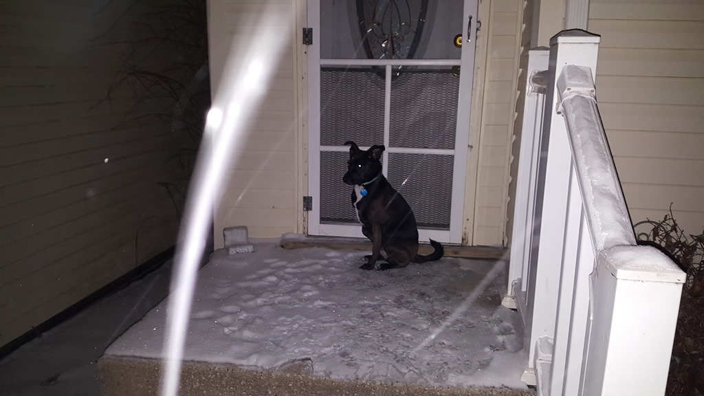 As with many of you, we’re getting snow this Sunday evening…well, it’s actually almost Monday. Thankfully, I have Monday off thanks to Martin Luther King, Jr., so I was outside just a few minutes ago with my puppies. This is what it is like: