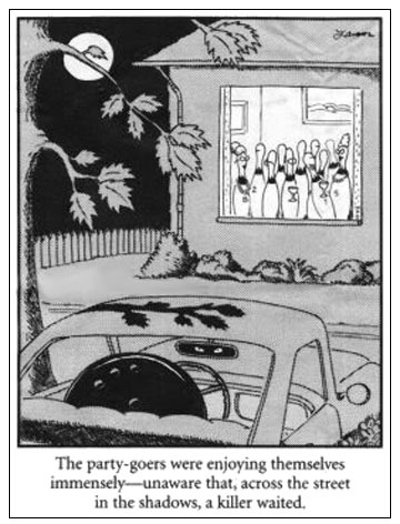 “Well, we were on the fifth tee…and this hole is a monster, Mother – 540 yard Par 5, with a nasty dogleg right and a hidden green…and I hit the drive of my life. I creamed it. The sweetest swing I ever made. And it’s flying straight and true, right along the line I wanted…and it hits a bird in mid-flight!”